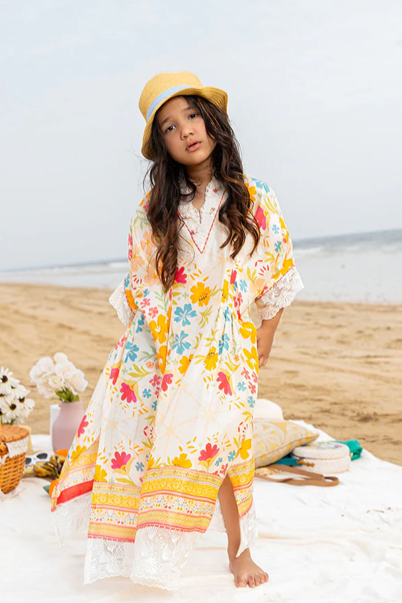 girls just wanna have fun in our luxe printed pure rawsilk kaftan. Dainty handwork and embroideries to bring out the popping colours and embroideries is perfect this summer and eidKaftan: Pure Raw Silk