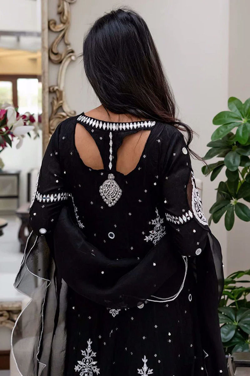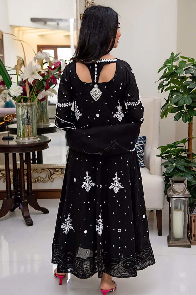 Beautifully embroidered and handcrafted kalidar in cotton net with mirror work and handwork details. It has our signature back. It is paired with a scalloped organza dupatta with hand work spray and lace detailing and statement pants. Perfect for an intimate wedding or any festive occasion.Shirt: Cotton NetDupatta: Cotton Net