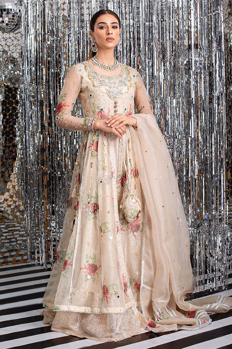 An exquisite front open kalidar with festive floral digital printing. And plush shimmer lining to make your occasion dreamy. Intricate ganga jamna hand work and gota detailing gives makes this outfit not be missed. There’s a spray of sequins mirrors and gota. Shirt: Raw Silk Dupatta: Raw Silk Pant: Raw Silk