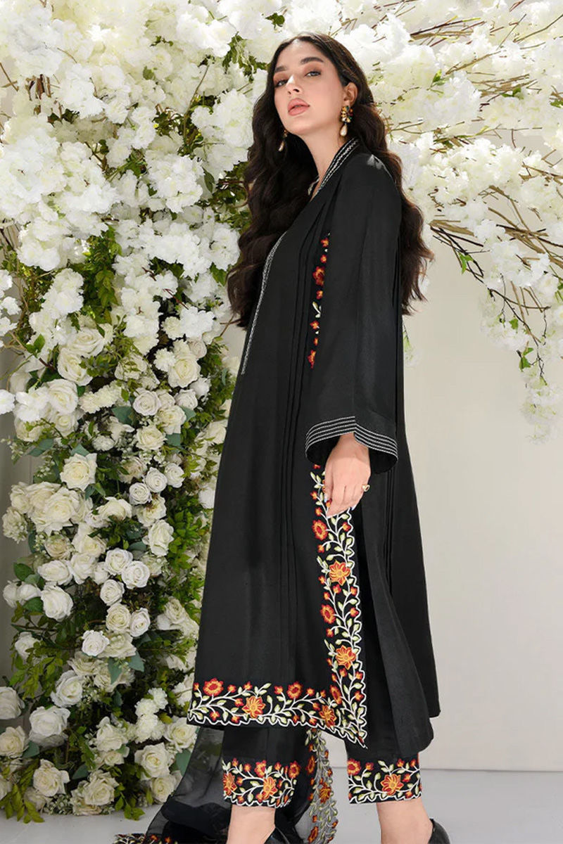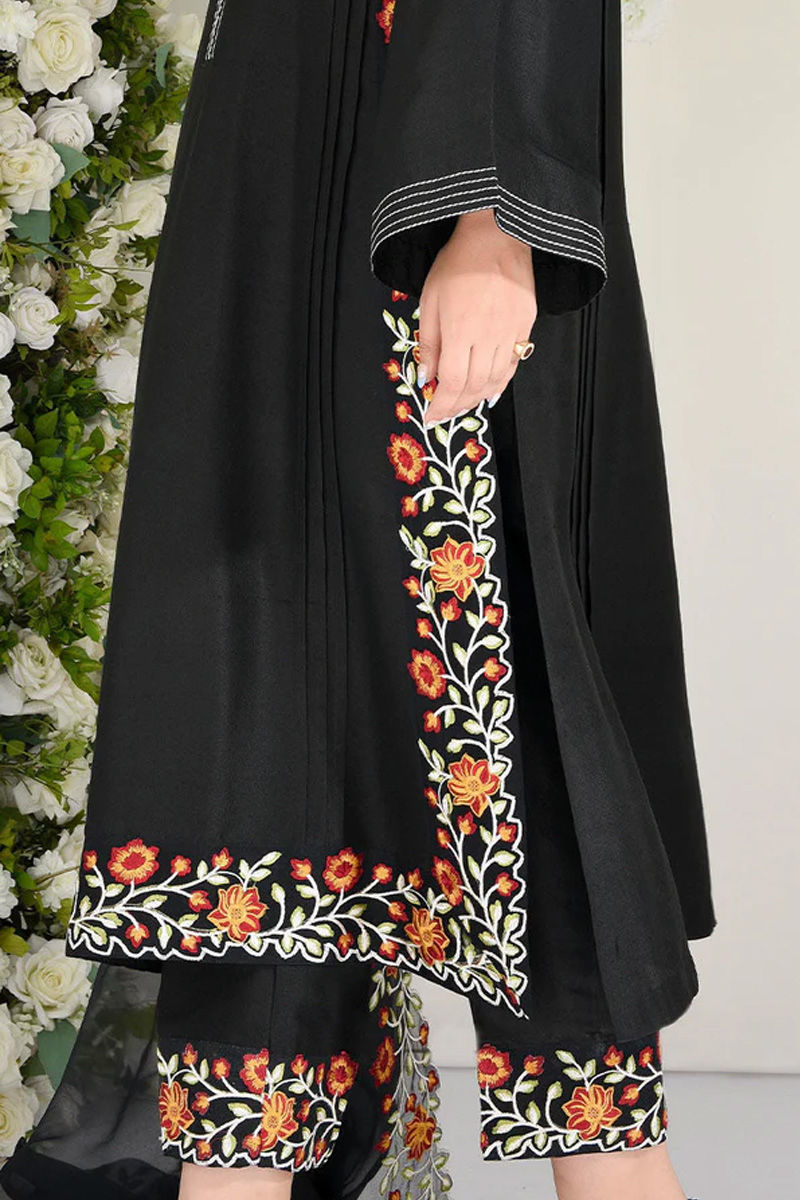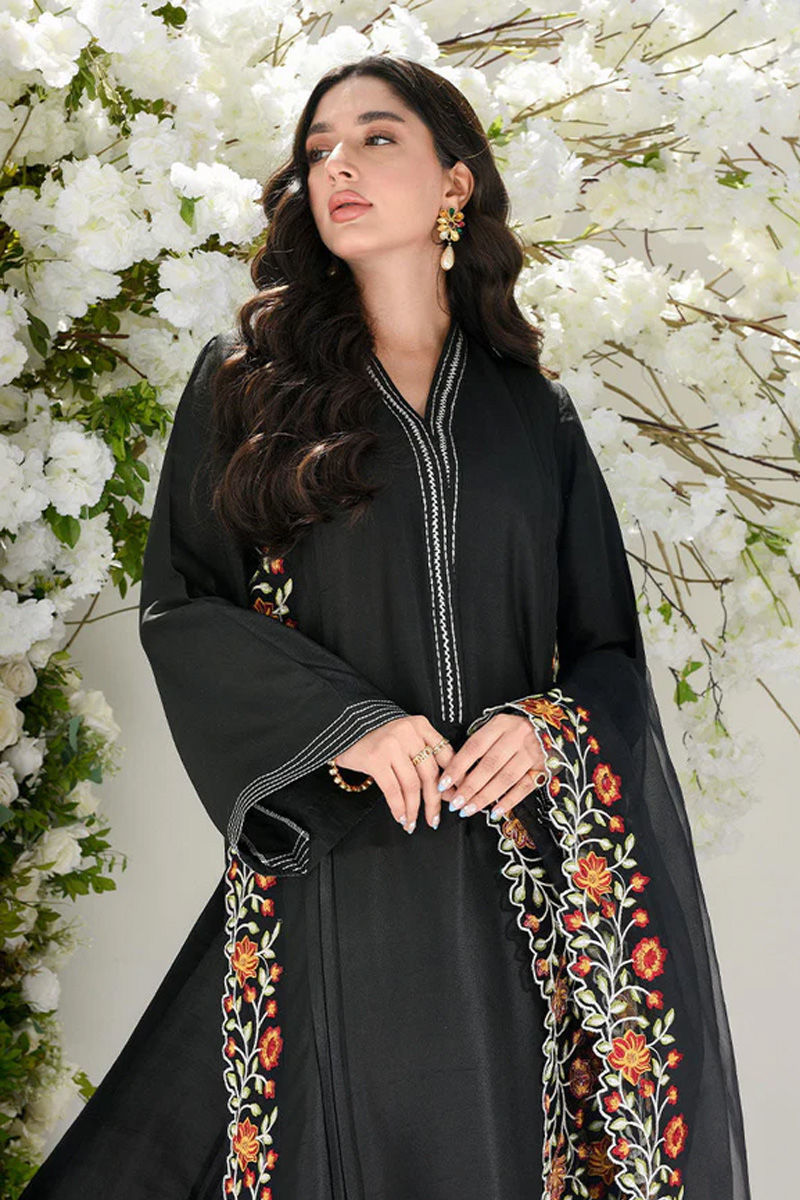 Freshly cut in pure Raw Silk in a body flattering silhouette. The side slits and daaman are richly embroidered in silk thread to make it easy to wear on all your festive ocassions. The flowy organza dupatta is richly embroidered with four side scalloped floral borders. Neckline and sleeves are encrusted with ivory thread detailing making it perfect for all your festive needs.Shirt: Raw SilkDupatta: Raw Silk