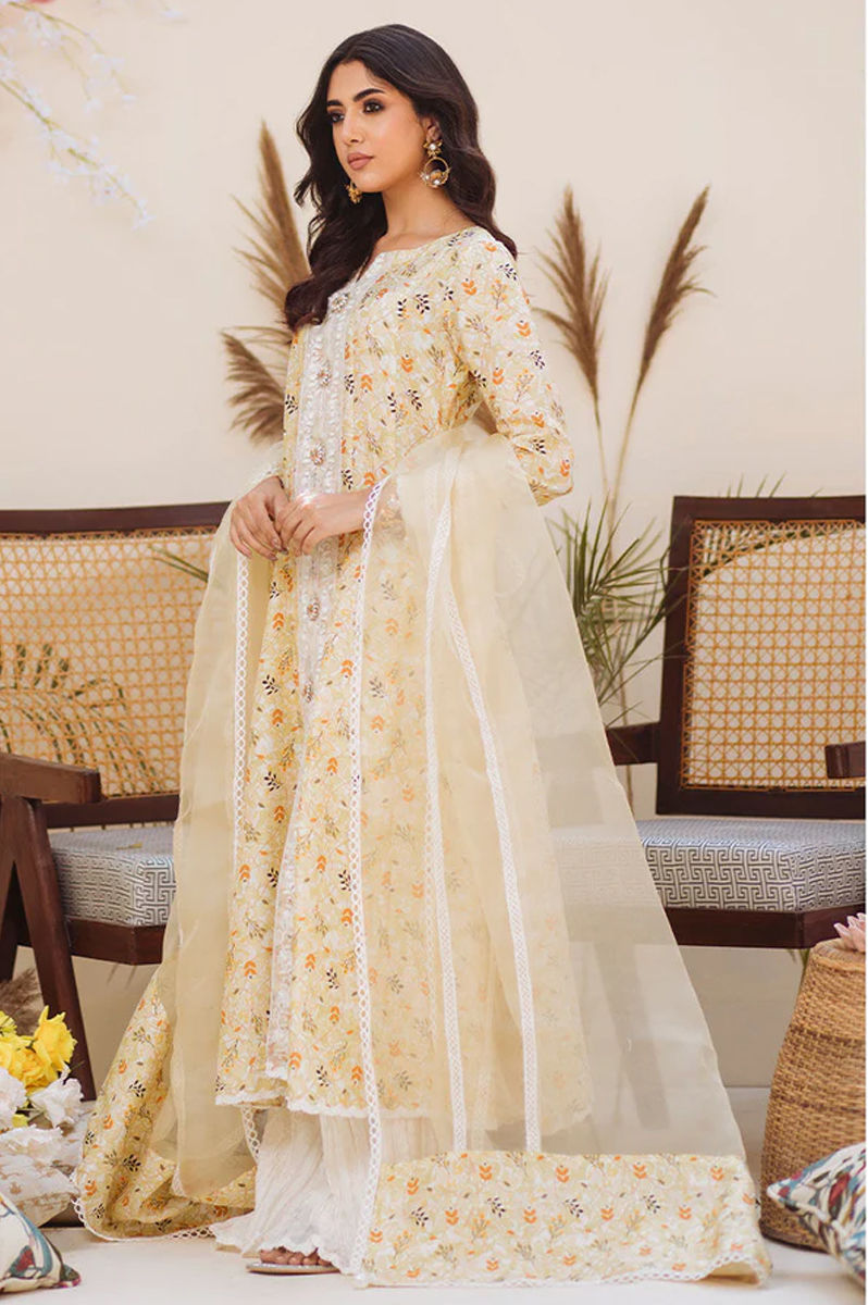 Our curated pure raw silk yellow printed front open shirt with our in-house embroidery appliquéd with impactful handmade buttons and dainty tassel details on the sleeves hem. Dupatta is on organza with print on pallu and finished off with laces. Pair it with the crushed silk Dhaka pants to complete the whole look. This silhouette calls for all summer and Eid soirées.Shirt: RawsilkDupatta: Rawsilk