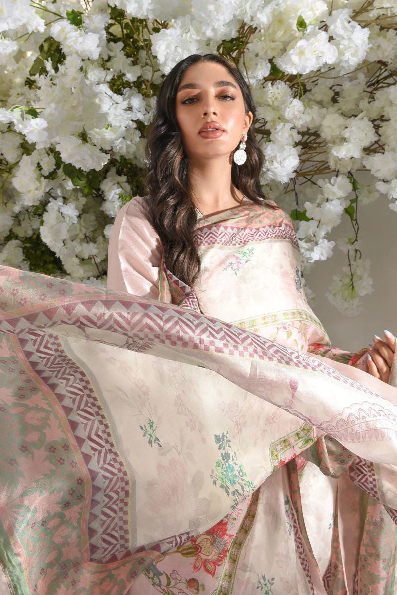 A soothing blush pink Raw Silk is a wardrobe must-have! In a body flattering classic silhouette in pure Raw Silk delicately floral embroidered neckline in pastel hues and embellished with Swarovski crystals with in-house hand worked motifs in zardozi, pearls and French knots . The sleeves and daman are beautifully embroidered In geometric patterns in pastel ivory and mint tones! We have paired it up with beautiful silk printed dupatta designed in-house in florals and pastel hues perfect for summer festivities finished with beautiful peco.Shirt: Raw SilkDupatta: Raw Silk