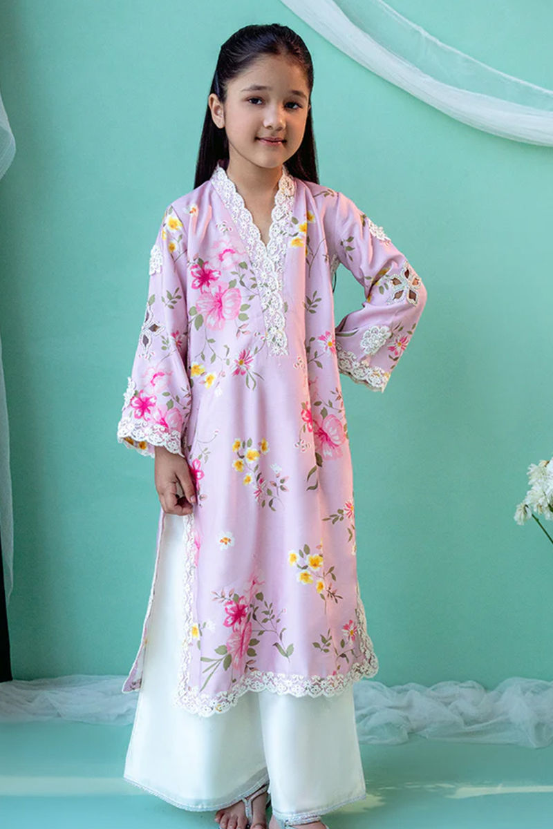 A stunning Khaddi Silk floral shirt in a soft mauve hue, perfect for a refined yet fresh look. The shirt features a stylish overlap collar, creating a flattering, asymmetrical neckline that adds a modern twist to the traditional fabric. The sleeves are beautifully detailed with cutwork embroidery, showcasing delicate floral patterns that enhance the shirt’s elegant appeal. Adding further charm are scalloped embroidery details along the side slits, elevating the overall design with a touch of intricate craftsmanship. The shirt is paired with a sheesha silk dhaka. Maximum shirt length : 31 " , Model height: 3'9