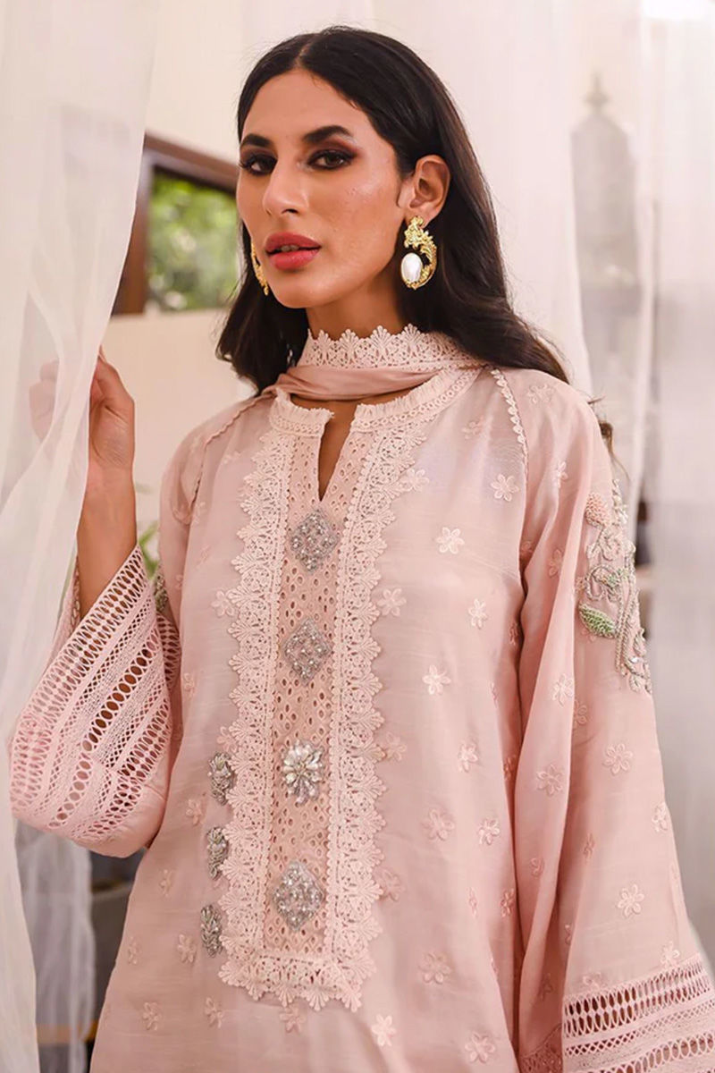A forever flattering silhouette in an easy-breezy fabric with handwork detailing on neckline and sleeves encrusted in pearls, zardozi and French knots. Oversized sleeves with handwork motif and cutwork lace make it a perfect summer outfit. The hemline is appliquéd with Chikan and organza detailing. It is paired with our signature pants and silk dupatta with Chikan appliqués and beautiful lace finishing.*It comes with a silk dupatta.Shirt: SilkDupatta: Silk