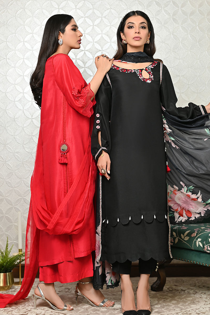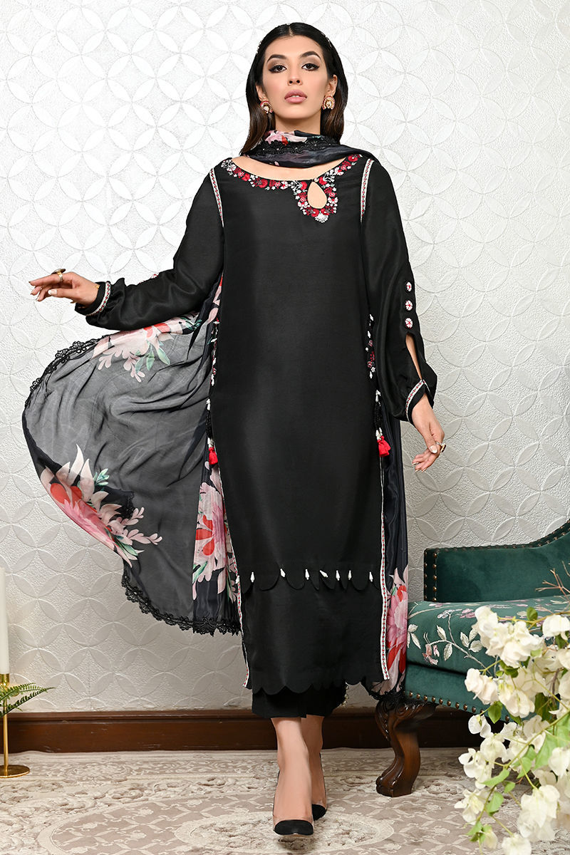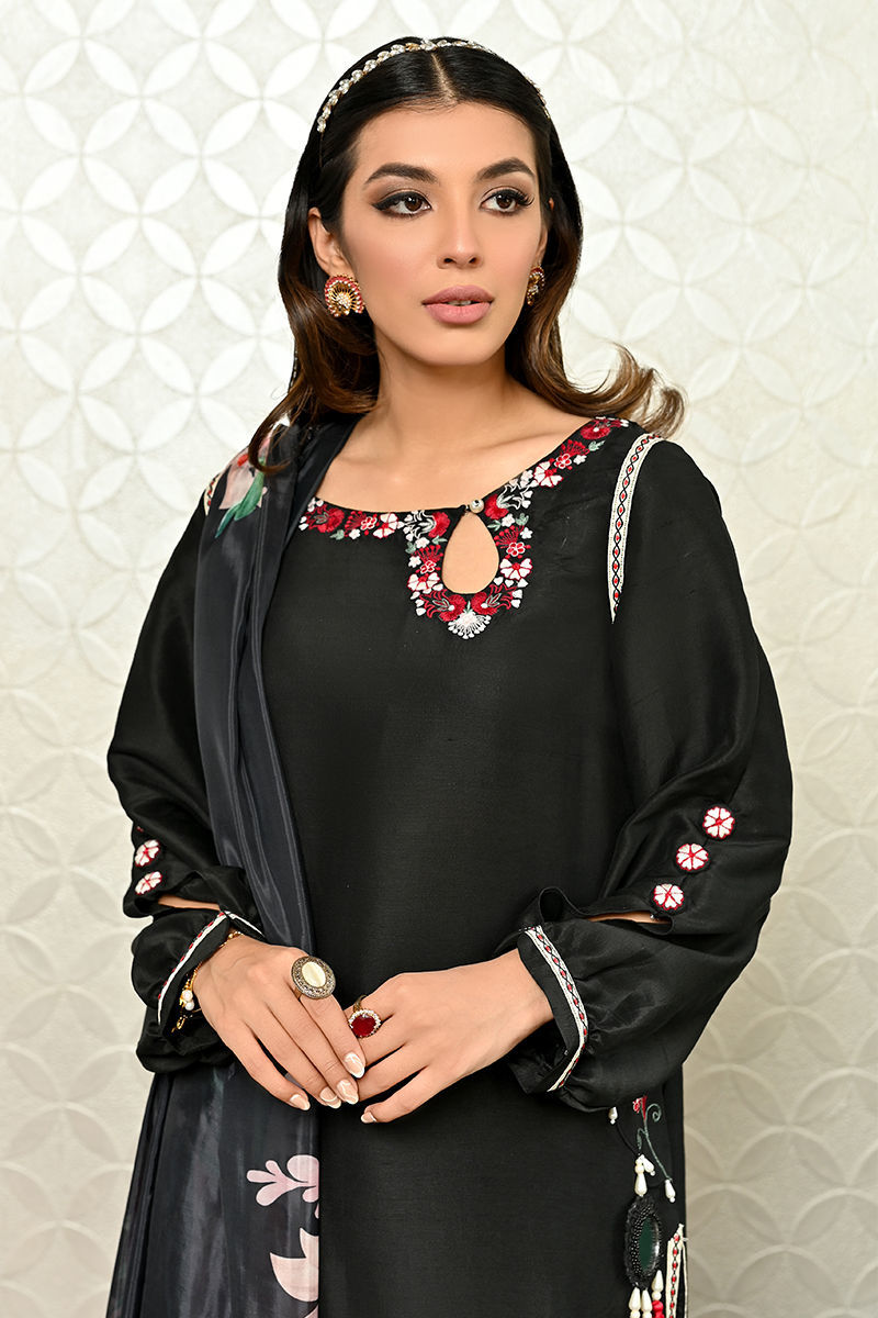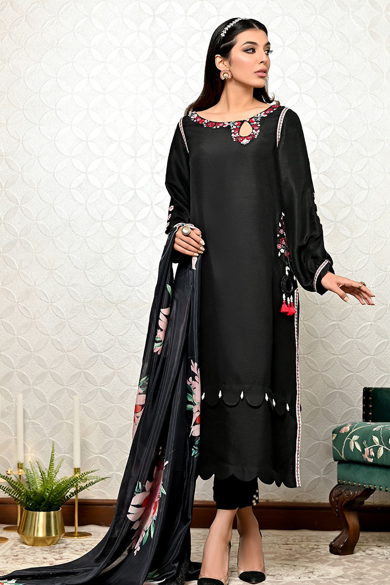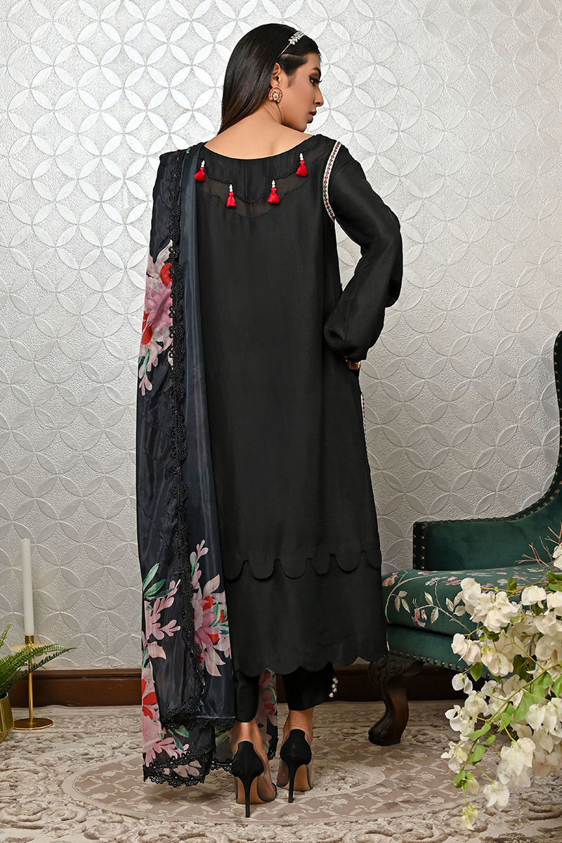 A forever flattering silhouette in pure raw silk. The outfit is intricately embroidered on neckline and side pockets. Our signature mirror tassels and scalloped hemline makes it a perfect chic outfit. The dupatta is created with pure love in silk with our in house digital prints. You can dress it up or down ! Designer’s little secret it looks stunning in sleeveless too for summer heatShirt: Raw SilkDupatta: Raw Silk
