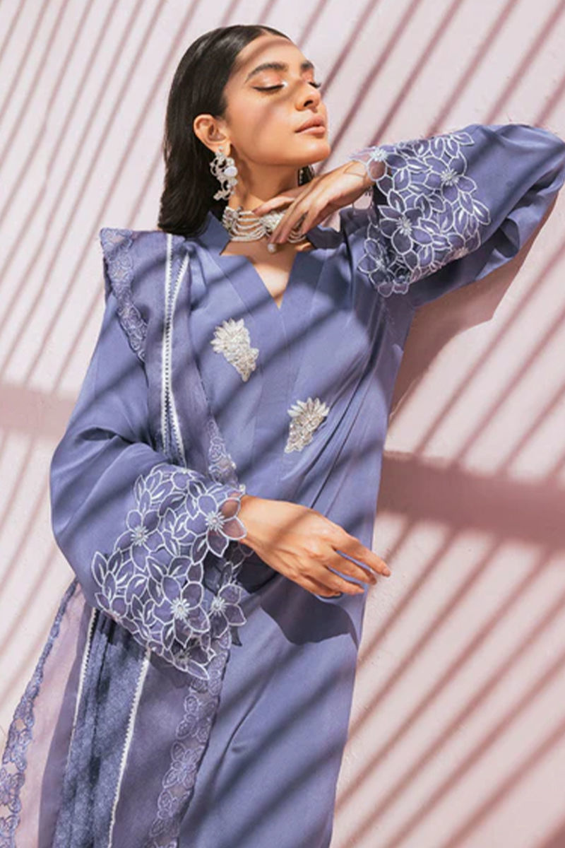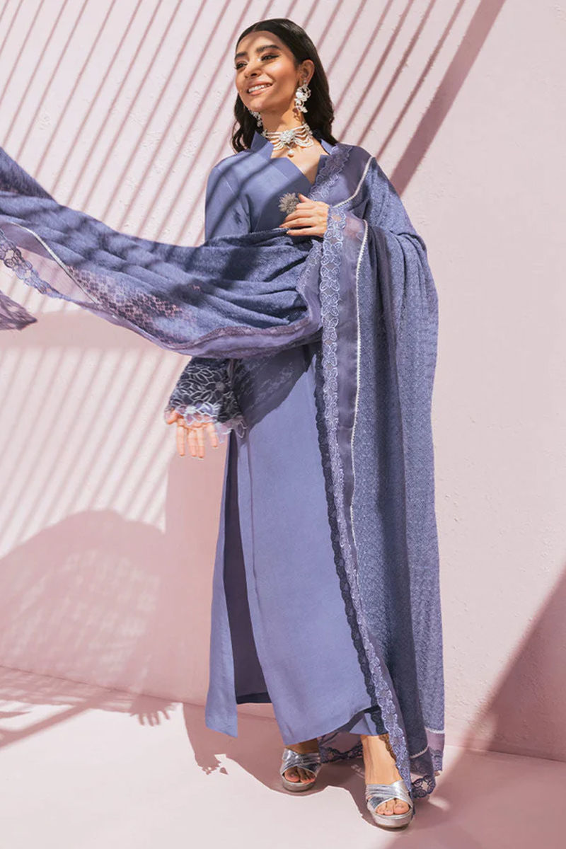 A must-have colour for this season. A universally Flattering silhouette shirt with hand-worked motifs on the neckline and cutwork floral details on sleeves. Dupatta is an amalgamation of schiffli, organza, gota and laces. Minimalism at its best!*schiffli pattern of dupatta might differShirt: Pure CrepePant: Pure Crepe