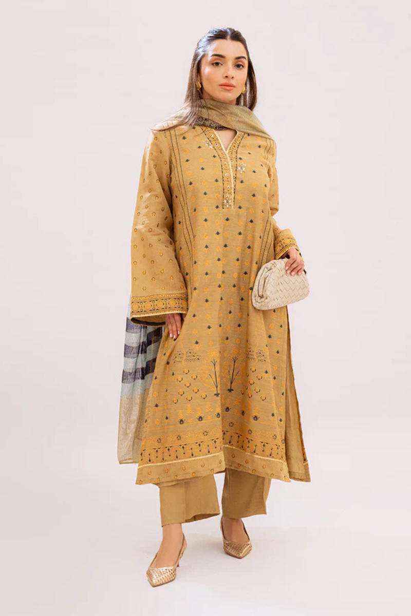 Stunning dhani green block printed shirt on mesuri net with handcrafted buttons and kingri, sequnece details is so chic with a complementing block print dupatta with kingri finishing. Pants are on silk. Turn heads this Ramadan and carry this outfit ever so effortlessly., perfect your sehris and iftaris
