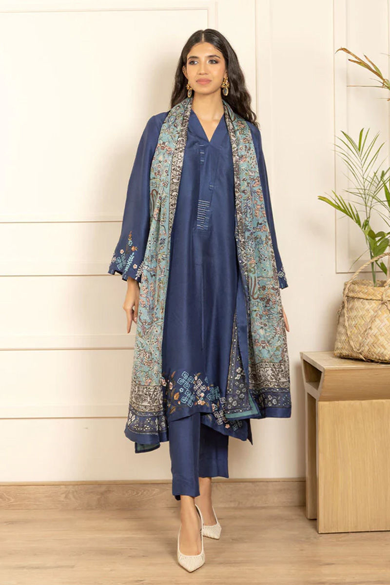 A forever flattering silhouette cut from pure rawsilk in a tone of deep blue making it a must have for summer afternoons and evenings!Delicate detailing on neckline and signature floral and geometric embroideries in tones that pop make it totally our favourite! We have added swarovski crystals for just enough bling.Beautifully in house designed duppata easy to carry duppata in tones of firoza and blues instantly lifts up the outfit!we love the statement cut sleevesShirt: Pure Raw SilkDupatta: Organza